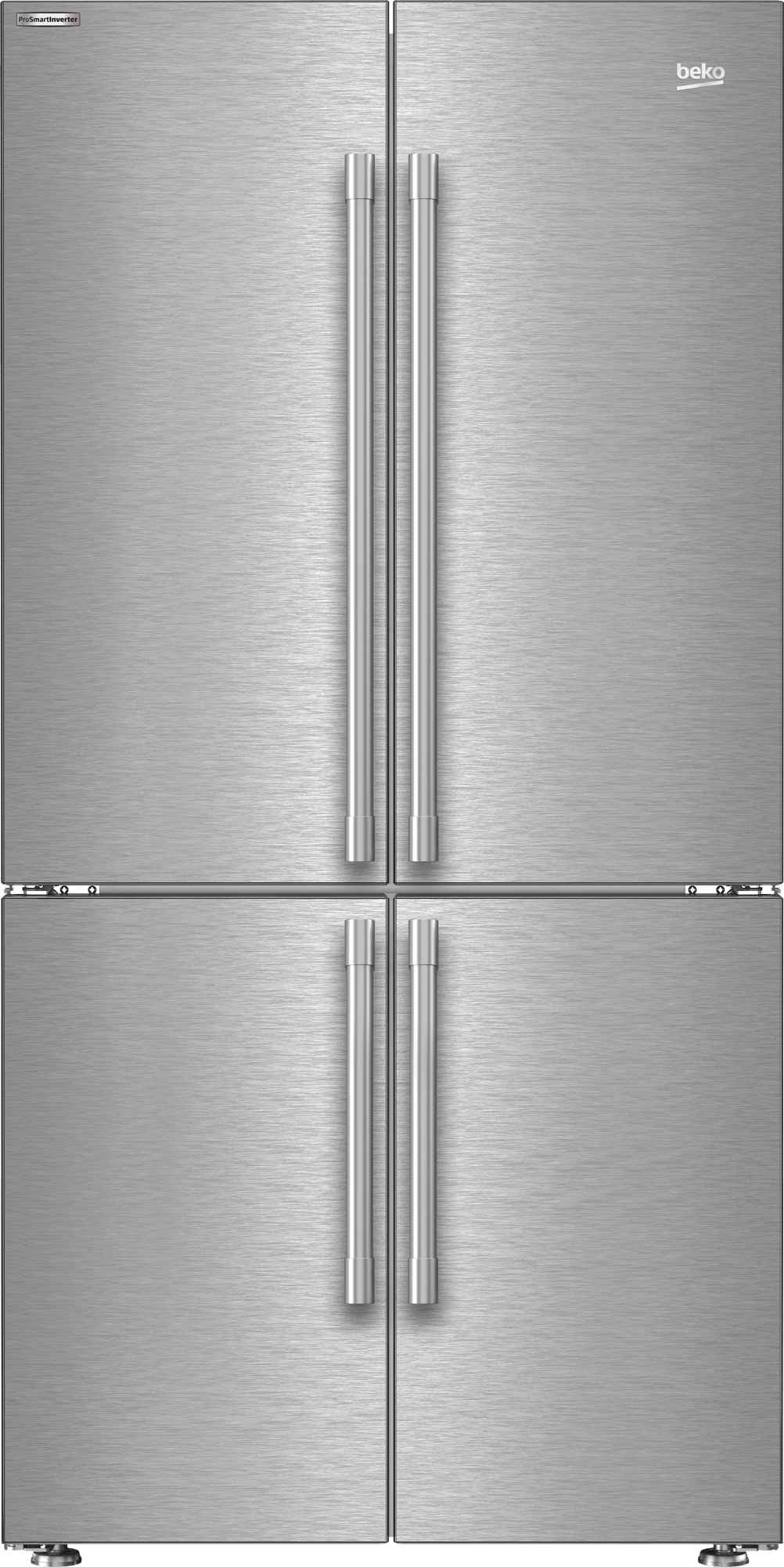 Indulge in ultra-convenience with the interior filtered water dispenser, inner top digital controls, and theater lighting of this Beko 36” counter-depth, three-door French refrigerator. With refreshing technologies like EveryFresh+, photosynthesis-activating blue light, dual cooling, and advanced IonGuard engineering, your fruits and veggies stay fresh for up to 30 days! Sip frosty-cool drinks every day with the ample ice output from the turbo ice maker. Complete with abundant storage, this stainless-steel French-door fridge is what you need to live like a pro.