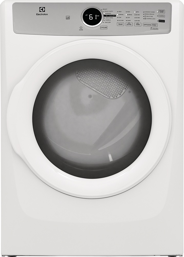 The Electrolux front load electric dryer features the 20-Minute Fast Dry cycle which allows you to quickly dry the items you need the most. Clothes are gently tumbled while moisture sensors detect when clothes are dry to prevent over-drying.Read More